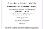 Purple Heart Recipients Recognition Ceremony, November 6, 2025 Published on October 29, 2025 Prince Edward County, Virginia and the Piedmont Area Veterans Council Cordially invite the community to join us in honoring America’s Veterans at a special ceremony recognizing our region’s Purple Heart Recipients, Thursday, November 6, 2025. Click to read more. Tagged as: , Honours & Celebration